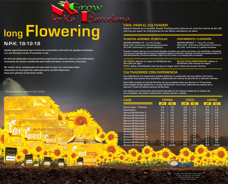 Long Flowering es una fórmula desarrollada para el crecimiento y la floración de variedades sativas y principalmente sativas.
