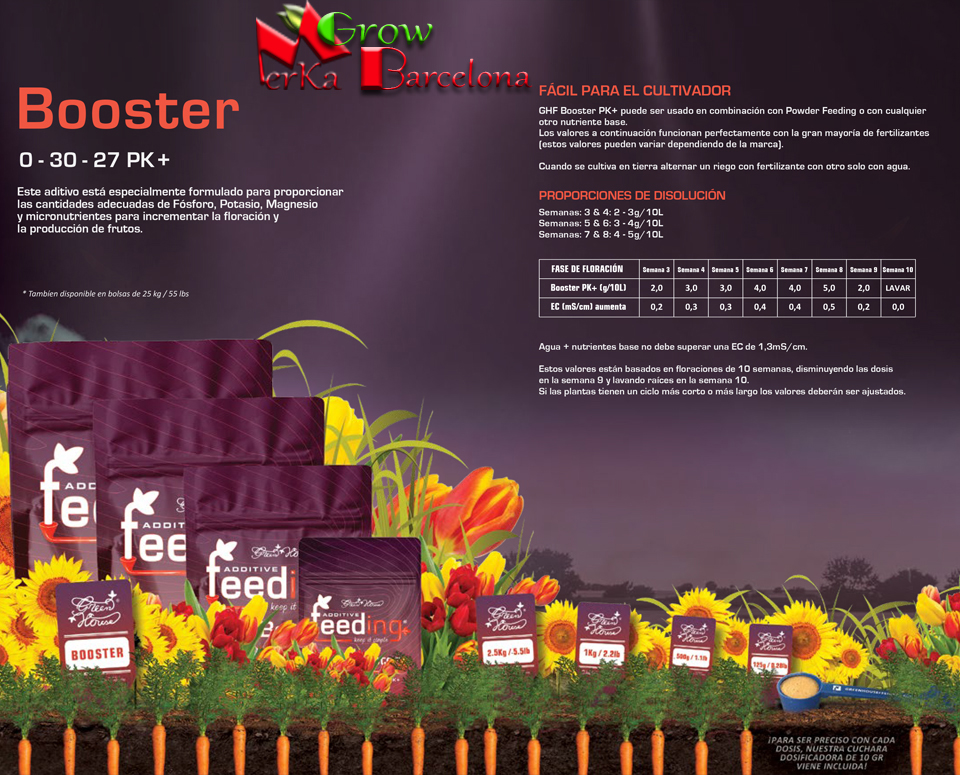 Semanas 3 y 4 = 2-3 g/10 L Booster + nutriente base