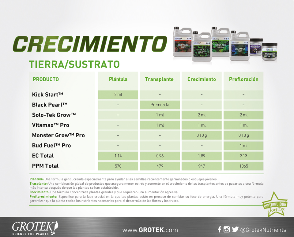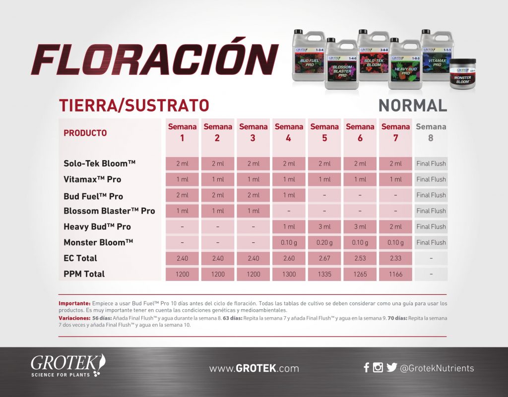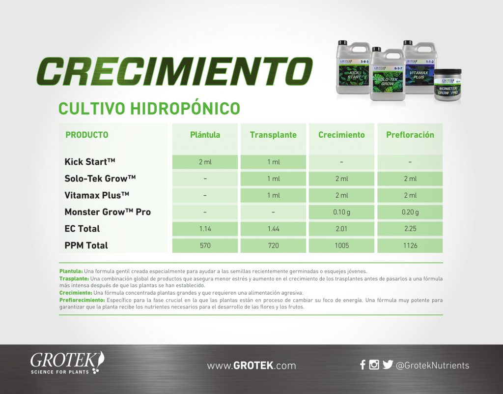 Agregue la cantidad de productos de alta potencia y alta concentración en nuestro kit a su ciclo de floración, y experimente el programa de rendimiento monstruoso de Grotek. Se incluye nuestro gráfico de alimentación fácil de usar que simplificará sus necesidades durante la etapa de floración.