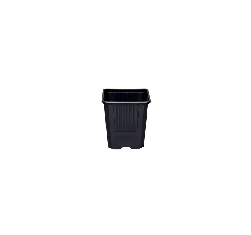 Maceta negra cuadrada blanda, con el fondo elevado para un drenaje sin problemas y para un aprovechamiento máximo del espacio en invernaderos, ideales para cultivos interiores.