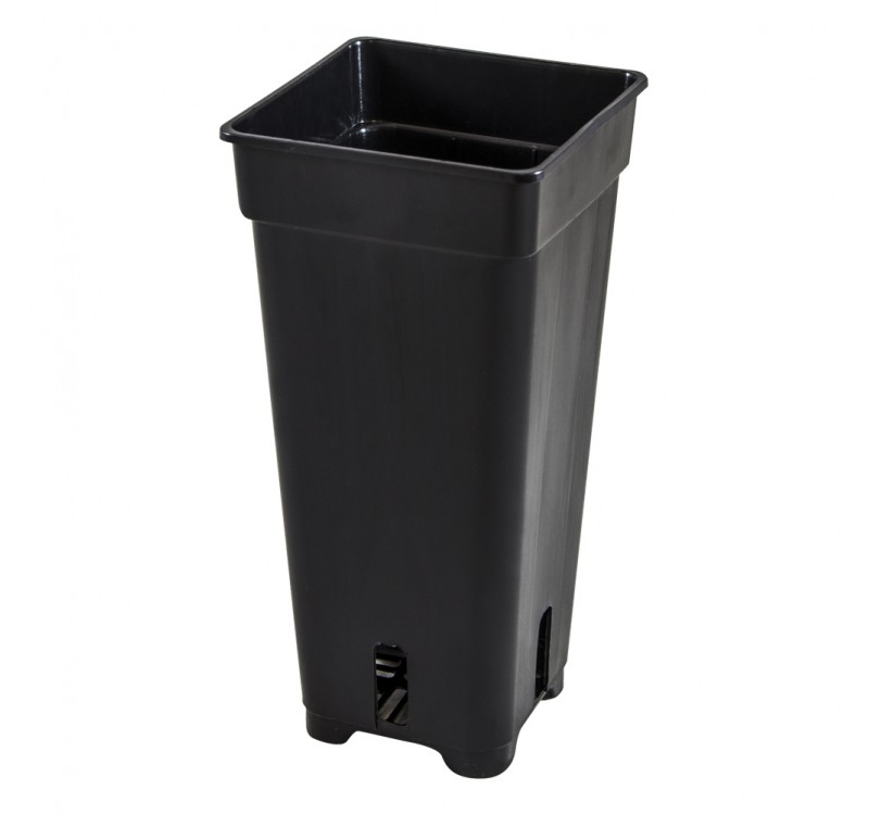 Maceta de plástico negro de gran calidad, de 1 litro de capacidad, con fondo de rejilla para un perfecto drenaje.