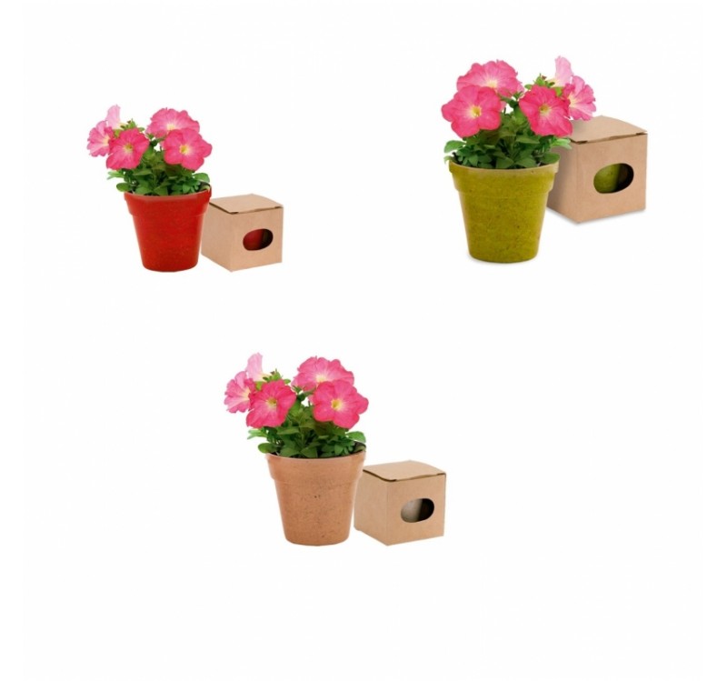 Maceta biodegradable de línea nature con semillas de Petunia y en variados colores. Con 5-8 semillas y bolsita de sustrato de crecimiento.