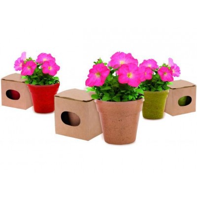 kit 3 Macetas biodegradables de línea nature con semillas de Petunia y en variados colores. Con 5-8 semillas y bolsita de sustrato de crecimiento.